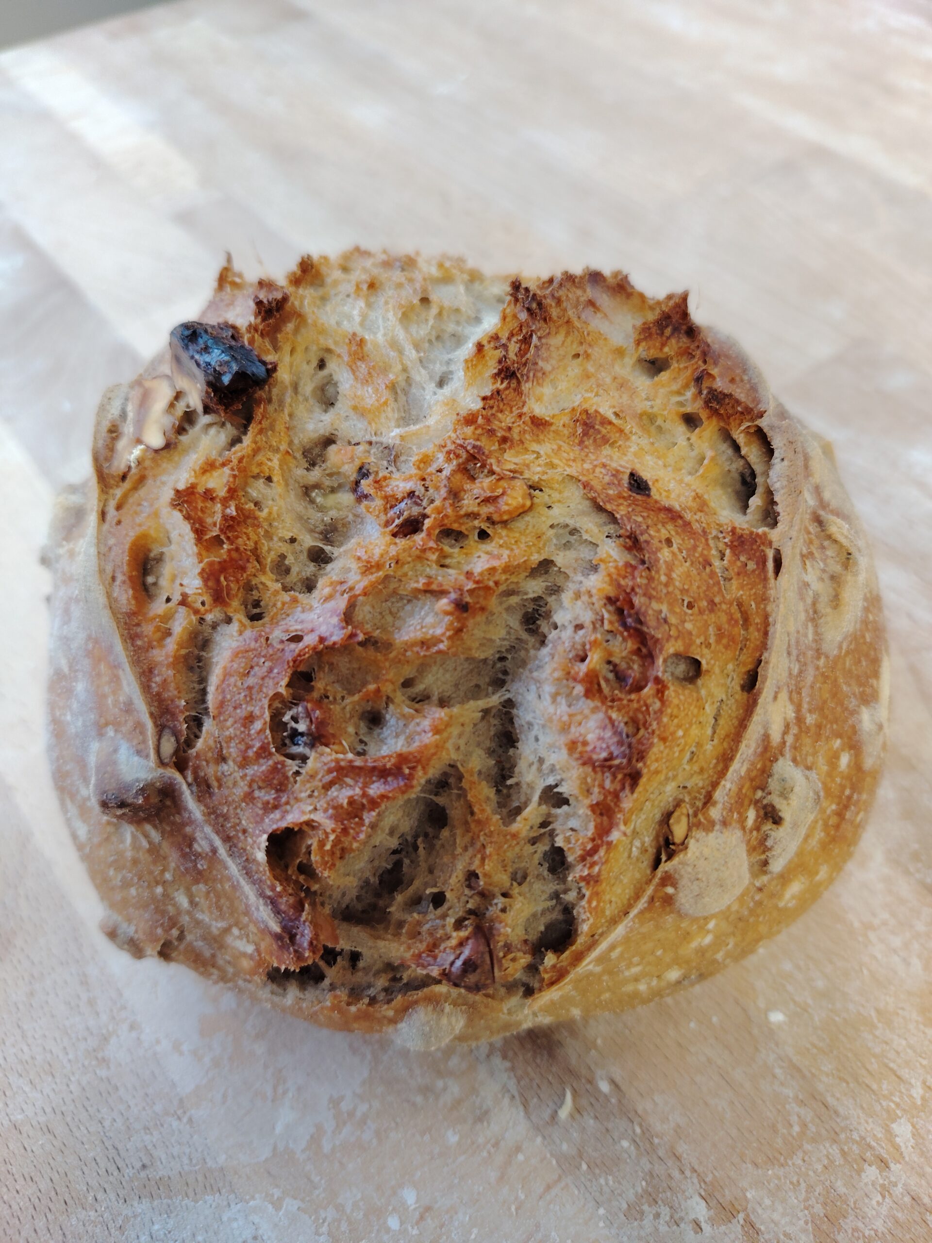 Farine de blé bise et de seigle, levain de blé, cerneaux de noix